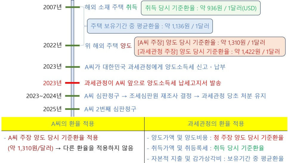 오늘은 해외주택 양도에 따른 환율 적용 관련 양도소득세 사례 1건을 살펴보려 해요.